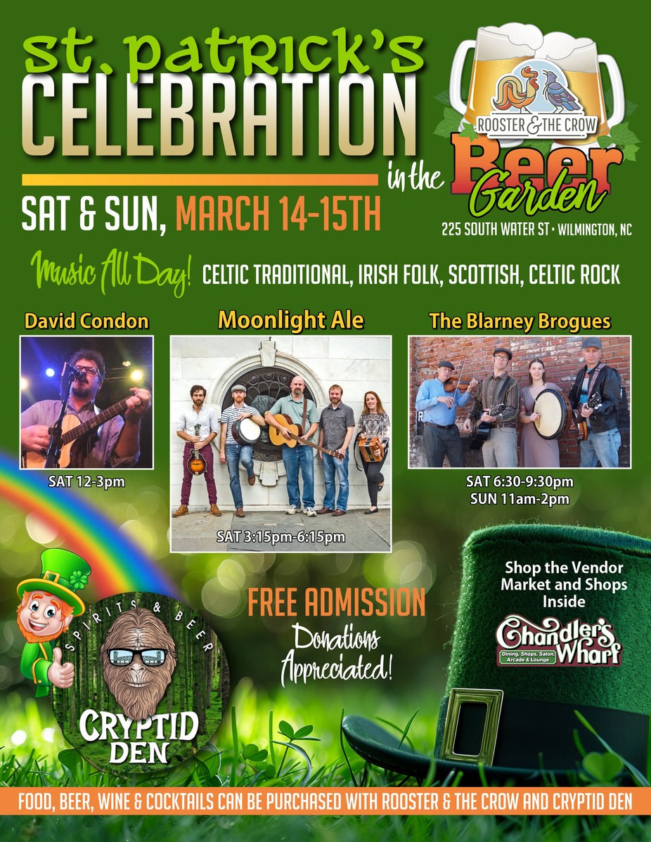 Join us in the Beer Garden on Saturday, March 14th, for the 3rd Annual St. Patrick's Celebration. Wear your favorite green garb, and enjoy all of the FREE Live Music and Fun! Cryptid Den is decorated in St. Paddy's decor and ready to serve you all your favorite beverages.
